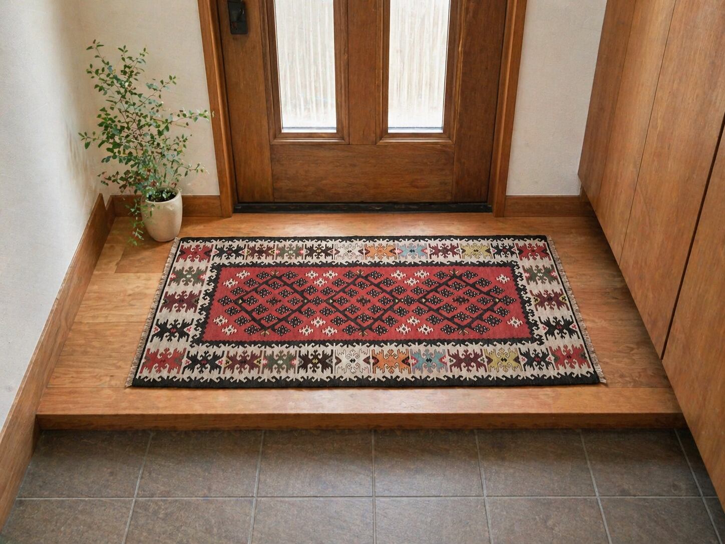 手織りのビンテージキリムラグ No85